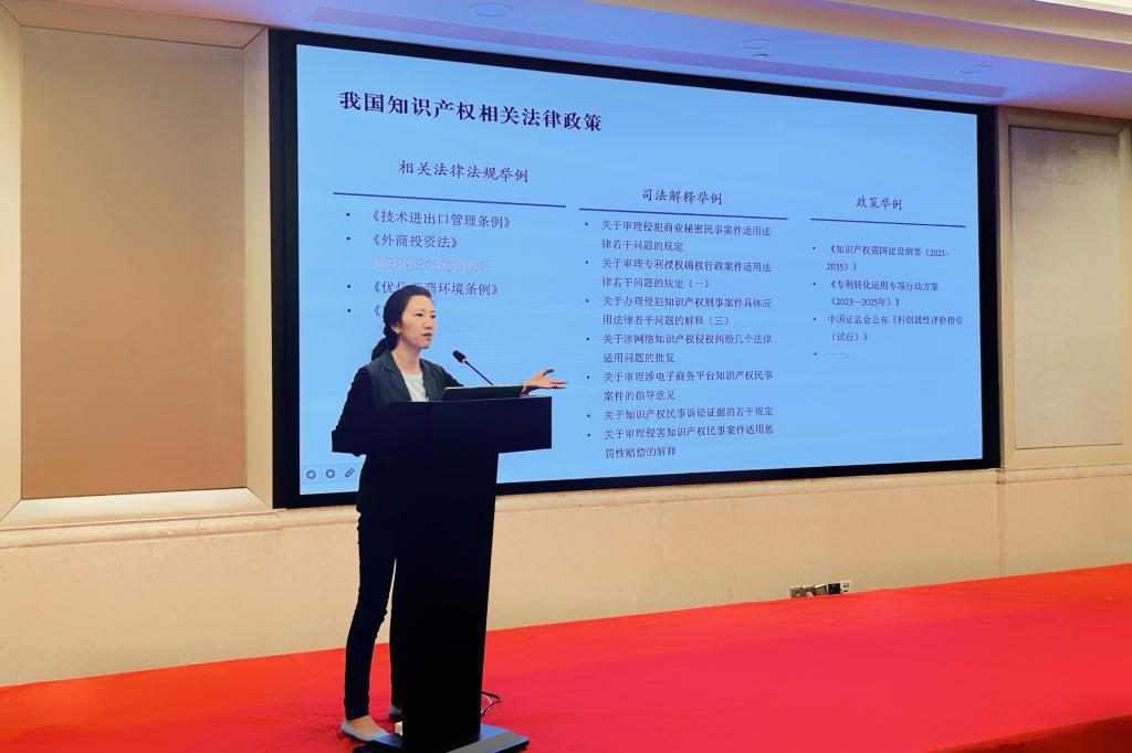 中国石油和化工工业联合会知识产权工作委员会副秘书长李爱民就《石化行业知识产权保护能力提升培训》开展主题讲座。他详细介绍了知识产权对舟山绿色石化新材料产业的支撑作用,深入剖析了舟山绿色石化新材料产业在知识产权领域面临的挑战和机遇,提出了包含技术创新、制度保障在内的多维解决方案体系。