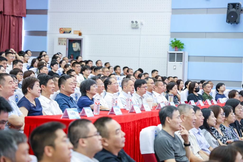 学校报告厅内,气氛庄重而热烈。数百名教师早早来到现场,等待阅兵仪式开始。当国旗冉冉升起、国歌奏响时,全体教师起立行注目礼,表达对祖国的深切热爱和崇高敬意。