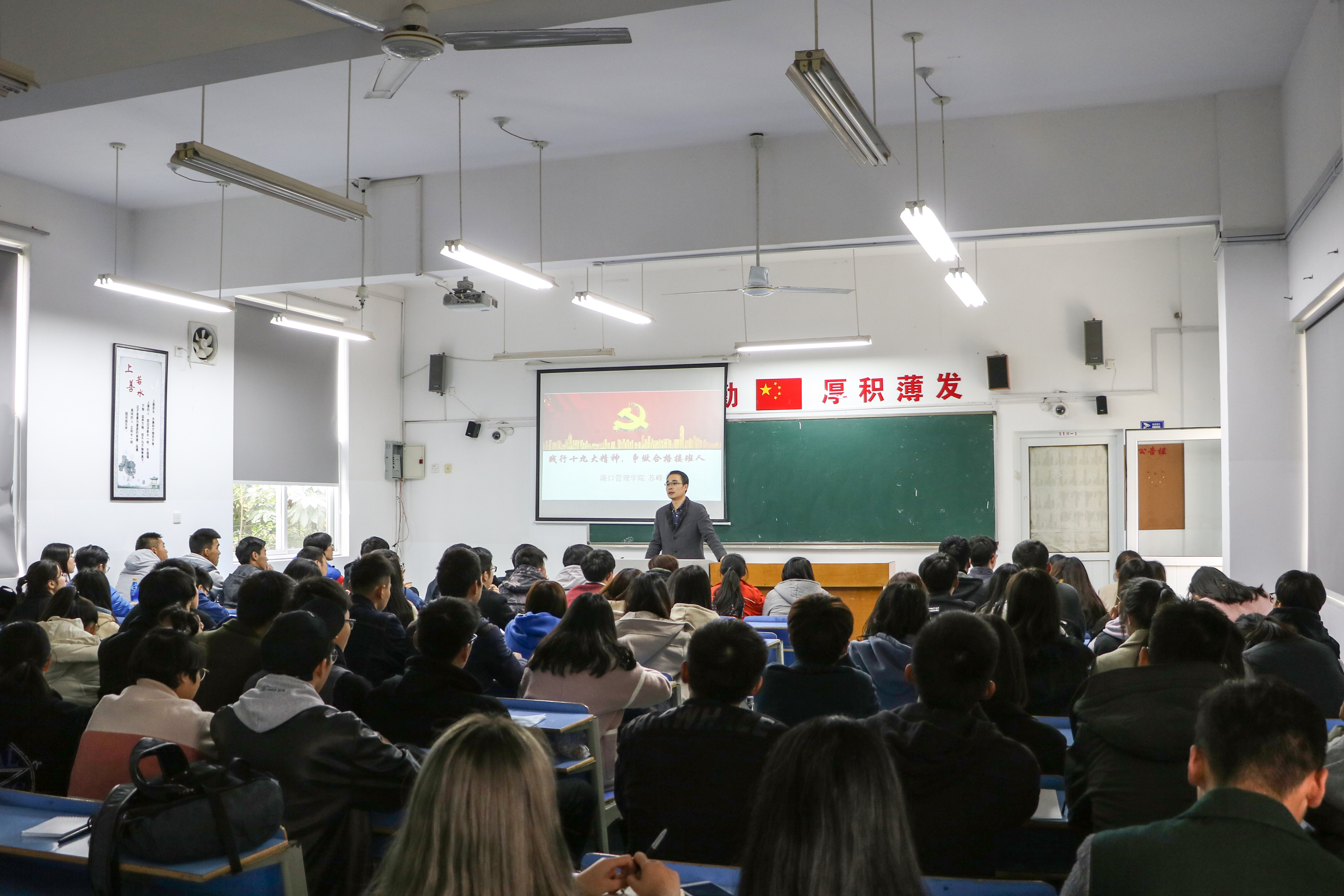 党的十九大召开以来,港口管理学院以多种形式积极组织全体师生开展十九大精神的学习活动,在校园内迅速掀起学习贯彻十九大精神的高潮。12月1日中午,学院党总支书记苏峰给团委学生会120余名干部干事带来了一场题为“践行十九大精神,争做合格接班人”的宣讲会。