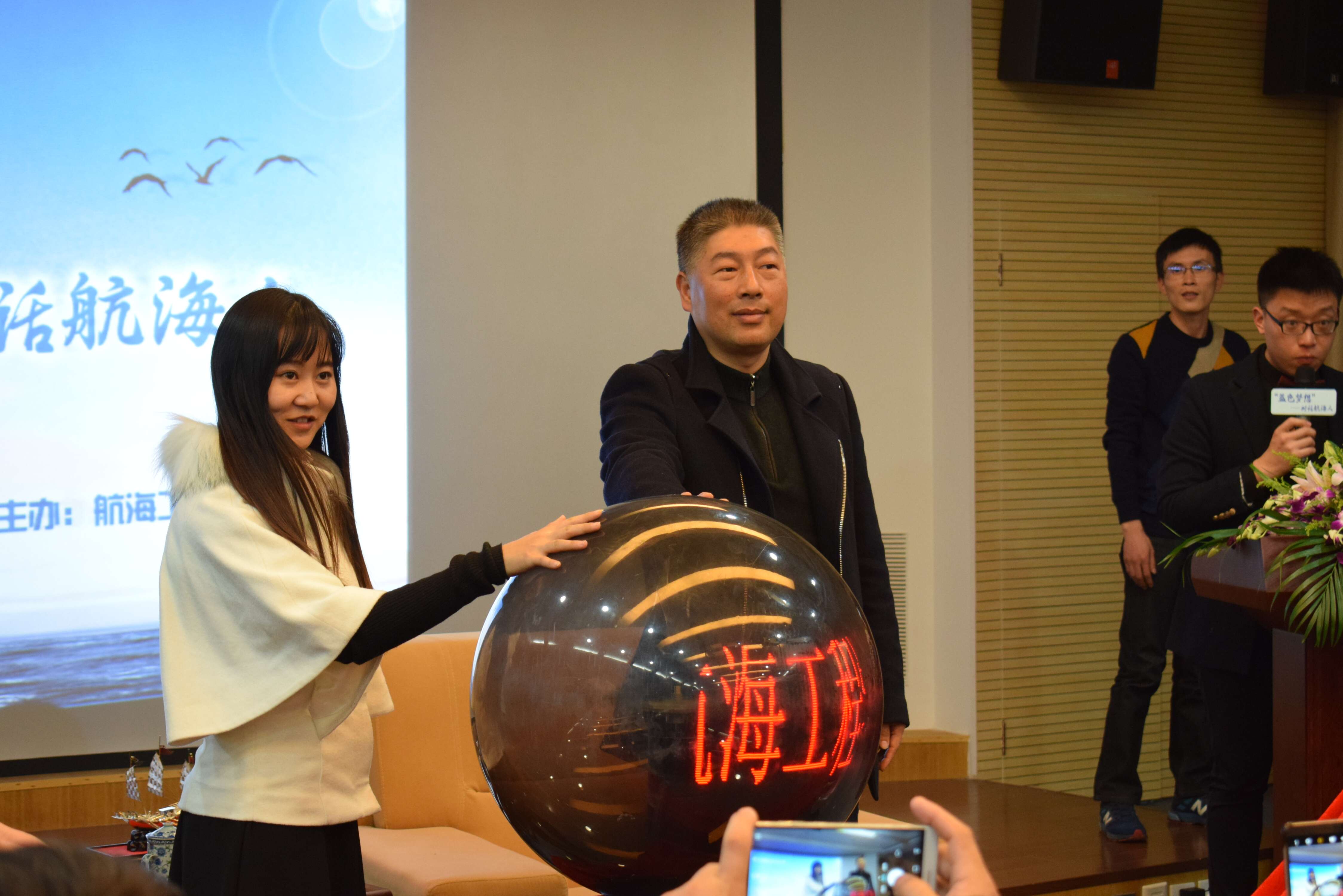 12月24日晚,百余名航海工程学院师生齐聚一堂,共同见证航海系列访谈“蓝色梦想——对话航海人”在OOCL楼多功能厅首讲。随着航海工程学院党总支书记韩开封与首期嘉宾共同点亮水晶球,系列访谈正式开启。