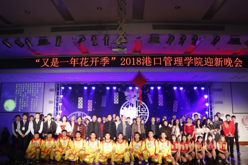 12月26日晚,港口管理学院“又是一年花开季”迎新年文艺晚会在图书馆报告厅精彩上演,校党委委员、副校长张新杰、学院党政班子和500余名同学共同观看了演出。