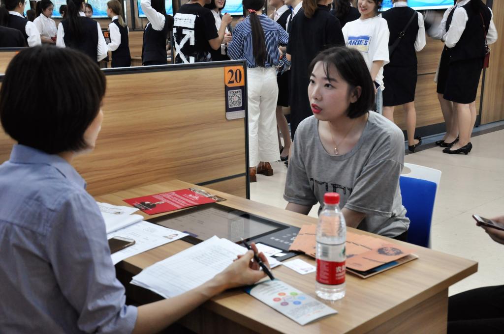下午两点,海洋旅游学院2018届毕业生就业双选会暨2019届毕业生实习双选会在舟山市人才资源市场进行。学院全体行政、教学团队负责人、辅导员、班主任到会,为学生进行现场指导。双选会场面火爆、气氛热烈,持续了两个半小时。经过企业和学生双方的共同协商,共有280多名学生找到了自己理想的单位和岗位,现场签约率达到93.6%,其中2018届毕业生与舟山企业的就业签约率达到41.5%,2019届毕业生舟山企业实习签约率达41%。