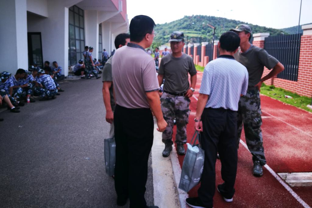 9月20日上午,石油化工学院院长李海波、党支部书记郑忠义、副院长柏昌顺和两位辅导员一起来到岱山校区田径场,慰问2018级参训新生和军训教官,并向全体学员和教官提前送上中秋节祝福。