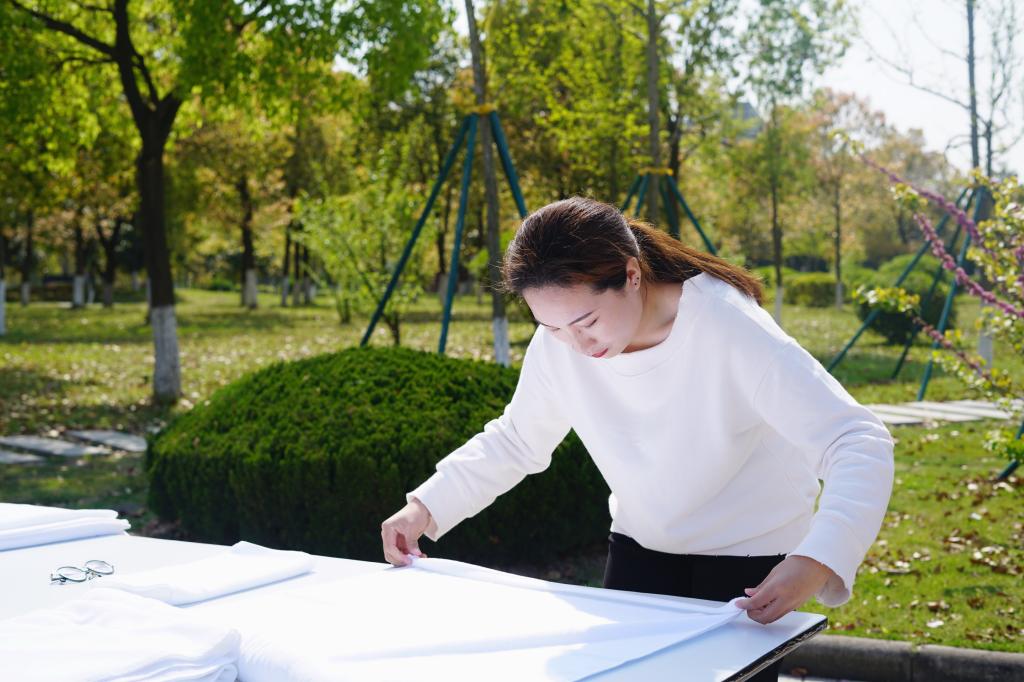 在董浩云广场西侧进行的毛巾宠物制作比赛,吸引了26位参赛选手。随着裁判计时口令的响起,参赛选手们凭借着扎实的专业功底,用毛巾折叠出各式各样的动物形象,有猴子、泰迪熊、大象、沙漠骆驼等,同时,选手们发挥想象力运用丝巾、眼镜、树叶等为动物形象装饰。比赛现场热情洋溢,充分展现了同学们的个人素质和技能水平。经过2个小时的激烈角逐,综合比赛选手的仪容仪表、造型创意、折叠名称及意义等各项因素,评比出一、二、三等奖。(图文/海洋旅游学院)