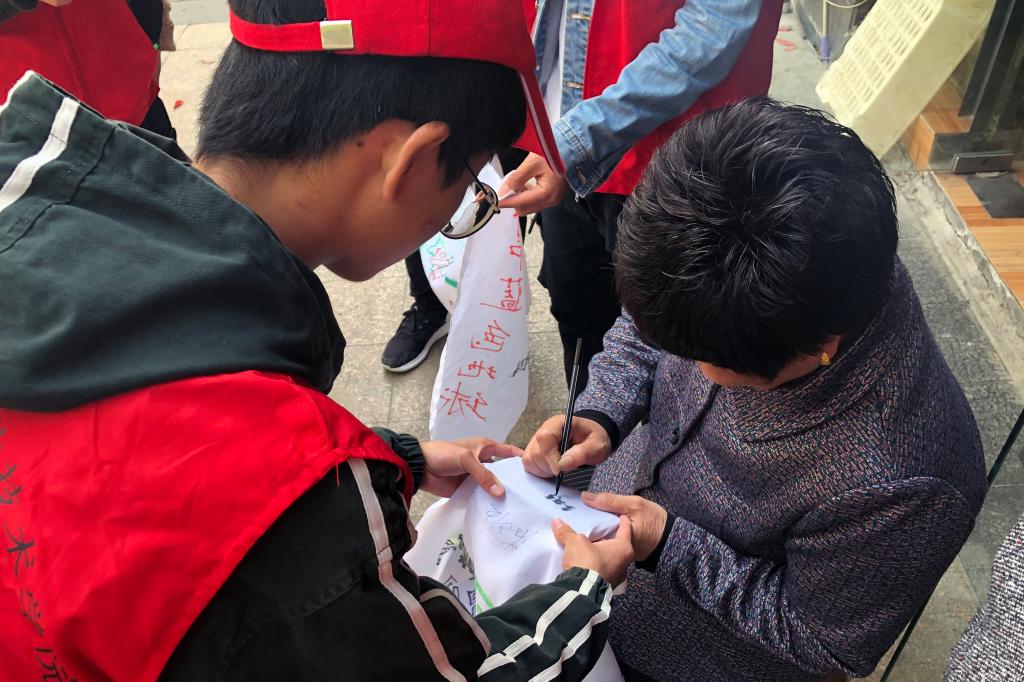 4月22日是世界地球日,为保护世界环境而设。为了迎接世界地球日的到来,唤起大家爱护地球、保护环境的拳拳之心,船舶工程学院红十字分会的“青春热血共创文明城市,暖暖温情守护新区老人”志愿服务队在4月21日组织开展了“创建文明城市,守护蓝色地球”主题宣传活动。志愿者们合力设计绘制了主题宣传旗,分组步行来到服务的社区,面向空巢老人和其他市民宣传环境保护小知识,呼吁大家低碳出行、节约各种资源和能源,并邀请市民在宣传旗上签名合影。