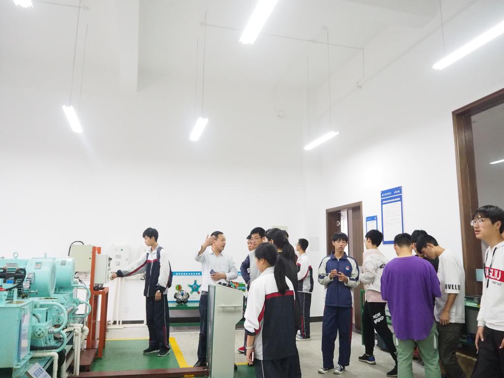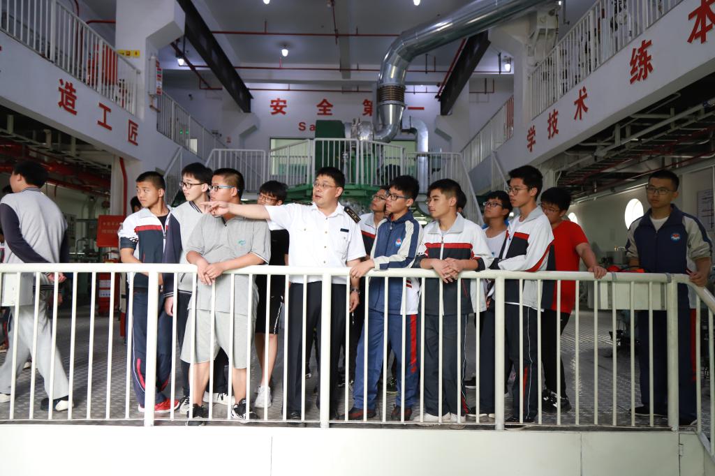 座谈会后,在志愿者的带领下,宁波海洋职业技术学校的师生们参观了校史馆、模拟器中心、综合实训楼和自动化机舱等实训室,以及致远创业学院和舟山市城市展览馆。