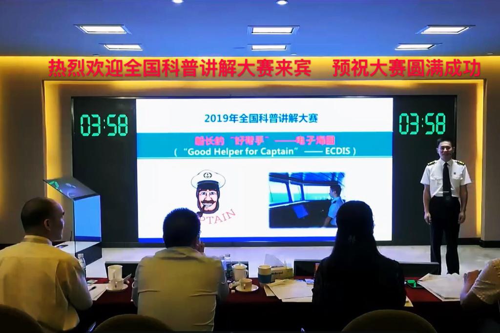 本次大赛中,有来自国家部委、军队及地方67支代表队共223名选手同台竞技。选手从全国各地各部门预赛中选拔产生。在决赛阶段,选手们依次上台讲解,参加命题讲解和随机命题讲解两个环节。其中自主命题讲解由选手自行确定一个科普主题进行讲解,而随机命题讲解主题则通过电脑随机包括港珠澳大桥、嫦娥四号、核心技术、无人驾驶、于敏、钱七虎20项命题中选取。我校李永广老师的自主命题讲解题目是船长的好帮手——电子海图”。比赛中,李永广凭借其特色明显的内容陈述、精致PPT展示、良好的表达效果和整体形象征服了现场评委,获得了现场观众的好评。