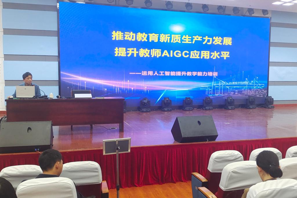本次教师培训第一课由现代港口贸易学院周剑敏教授作《推动教育新质生产力发展,提升教师AIGC应用水平》专题讲座。讲座紧紧围绕如何运用生成式人工智能提升教师教学能力这一关键问题,从AIGC在微课制作中应用、AIGC提示词工程、提示词高级应用、智能体及其教学辅助开发这个四方面对人工智能进行了全面深入的解读。在讲座过程中,周剑敏教授时不时穿插一些与广大教师密切相关的案例,如数字人技术、换脸技术、声音克隆技术、AIGC提示词工程、智能体及教学辅助开发等,生动幽默的案例赢得了在场广大教师热烈的掌声。讲座末尾,他还慷慨地分享了自己积累许久的干货资源,为提升广大教师的人工智能应用水平提供了强大助力。