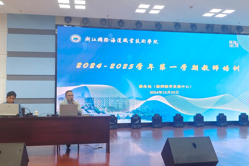 为深入学习贯彻党的二十大会议精神,围绕立德树人根本任务,推进“三全育人”、人工智能教学应用、数字化有效教学及高水平、结构化教师教学团队建设,深化“三教”改革,拓宽教师职业教育改革与创新的思路和方法,提高教师的综合素质和能力,10月23日下午,由学校教务处(教师教学发展中心)组织的“2024-2025学年第一学期教师培训——人工智能专题培训”在图书馆四楼报告厅顺利开展,各教学单位负责人、全校教师参加了培训。培训会由教务处副处长杨飞主持。
