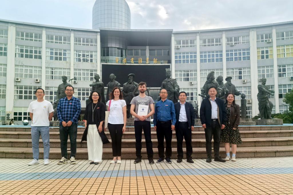 仪式结束后,两名外教在教学主管张波老师的陪同下,熟悉教室,参观校园。(国际教育学院、海洋装备工程学院)