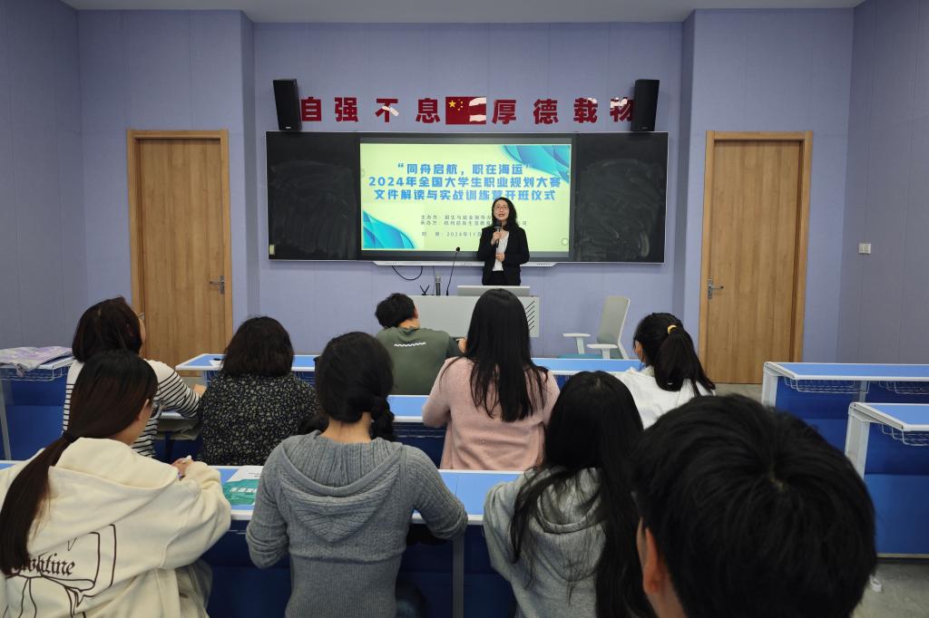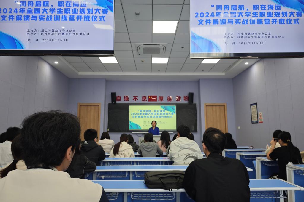 为稳步有序推进我校大学生职业生涯规划大赛有关工作,激发广大师生参赛热情,切实达到以赛促学、以赛促教、以赛促就的目标,11月2日,学校在图书馆四楼阶梯教室开展了“同舟启航·职在海运”2024年大学生职业生涯规划大赛专题培训。本次活动由学校招就办主任马露瑶主持,报名今年大赛的指导教师和学生参加会议。