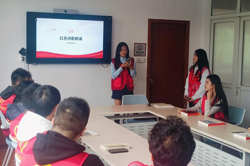随后的红色诗歌朗诵环节中,同学们一个个声情并茂、自信满满,用最真挚的情感、最激昂的语气,倾诉着对党深厚的热爱,以及对革命先辈崇高的敬意与缅怀。每一段诗句都承载着厚重的历史,每一声诵读都激荡着现场观众的心灵,整个朗诵环节掌声不断。