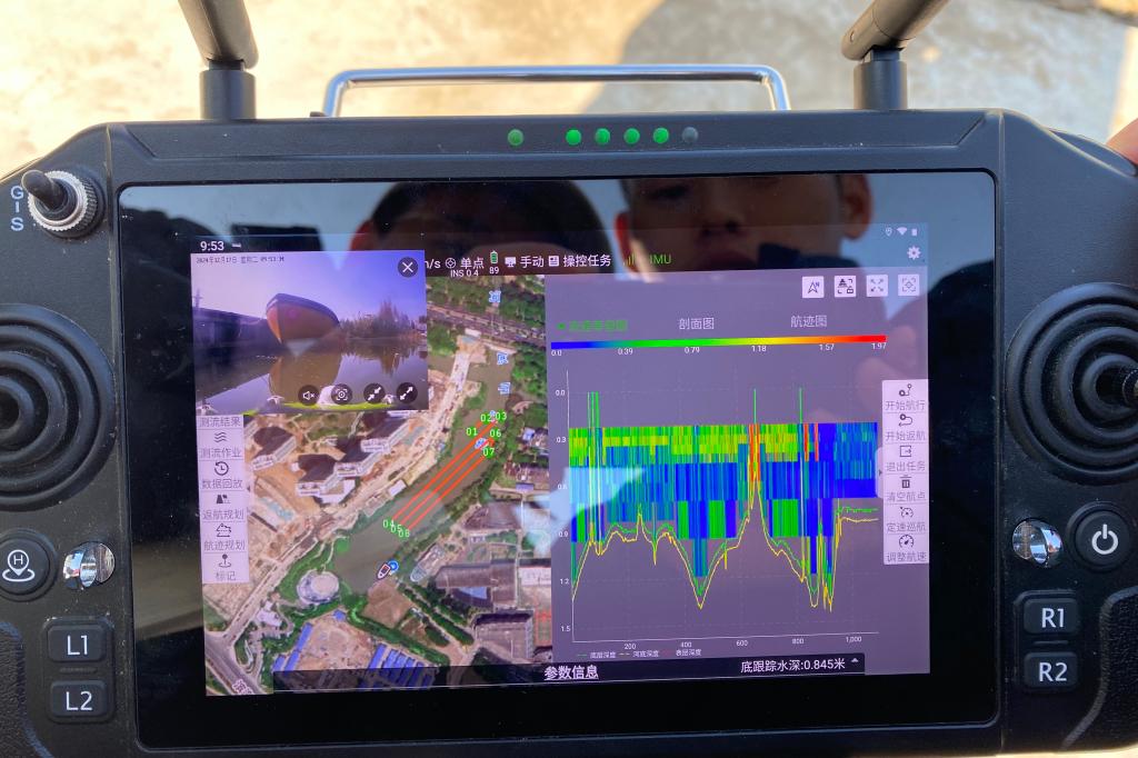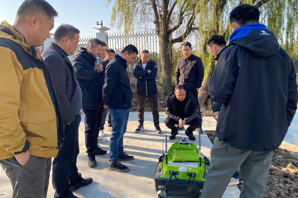 座谈会前,中海达华东区解决方案经理包新刚在我校西侧河中演示了该公司自主研制的无人船在复杂条件下自主航行,以及水底地形、水流测量等功能。我校李子强老师等也进行操作,了解该船性能,探讨其对于我校无人船舶教学培训的适用性。