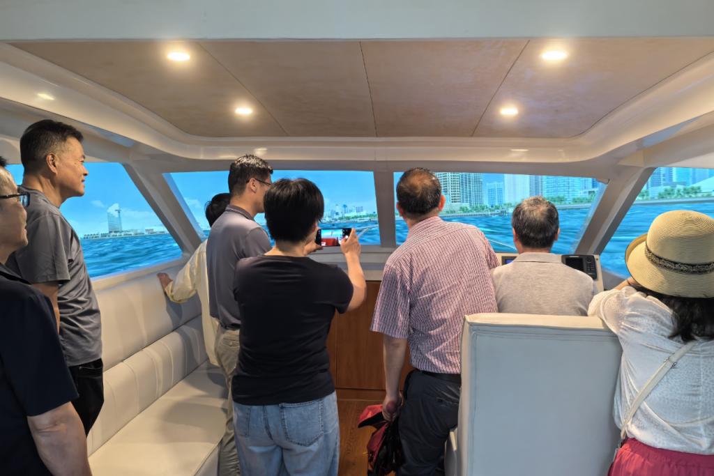 学员们首先来到水上训练中心,了解各类水上救援设备及训练流程,对水上安全保障体系有了初步认识。在航海模拟器与游艇模拟器区域,通过模拟驾驶体验,学员们亲身感受了航海操作的复杂性与重要性,沉浸式地学习航海知识与技巧。随后,学员们走进国家级现代航运虚拟仿真中心,先进的虚拟技术展示了航运过程中的各类场景及应急处置方式,拓宽了大家对海上安全应急的视野。参观结束后,双方就海上安全知识普及、应急技能培训等方面的社区教育工作展开座谈,交流经验与想法。