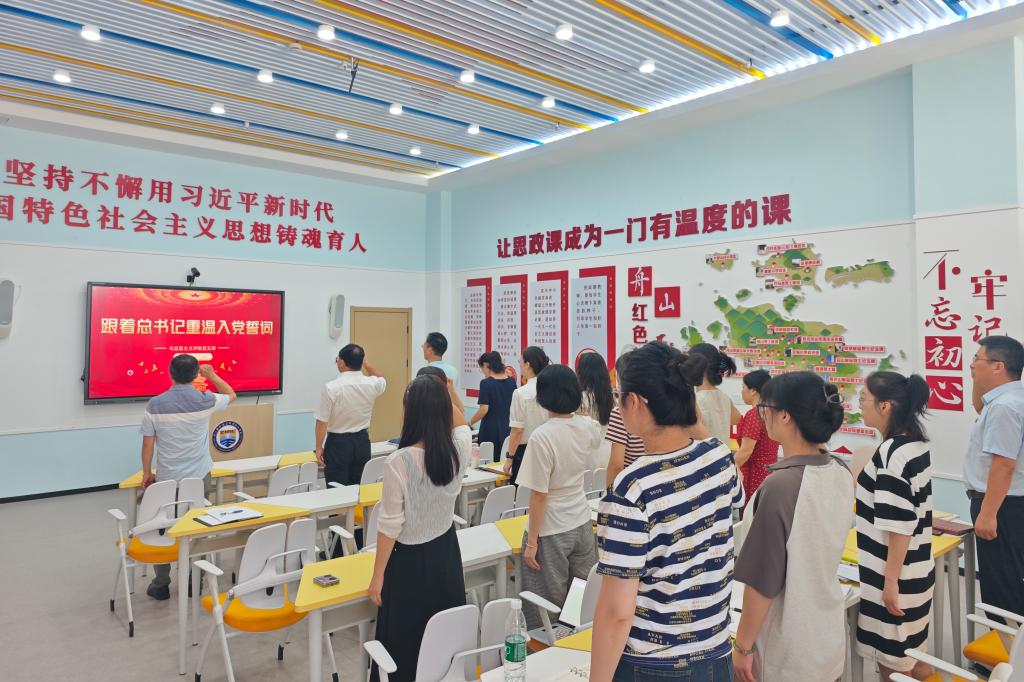 7月4日,马克思主义学院党支部在图书馆204思政智慧教室举行主题党日活动“跟着总书记重温入党誓词”。校党委副书记孔志光以普通党员身份参加。