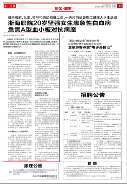 浙海职院20岁坚强女生患急性白血病 急需A型血小板对抗病魔