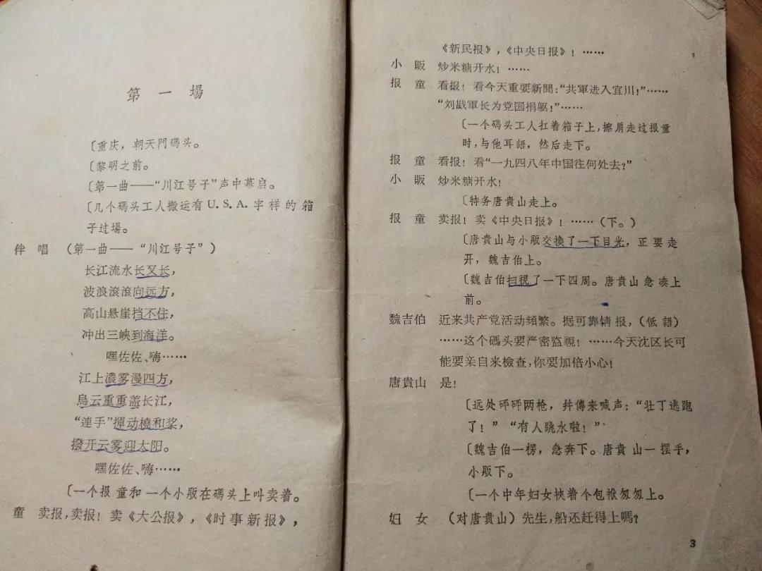 根据导演、舞美、音乐曲谱、演员各自的任务侧重,进行对口强化学习。大家一边看,一边记,回到住地听着录音,反复讨论研究每一个细节。导演蒋钟伟作了厚厚一本笔记,将整台戏的调度、场记一一画到本子里,做到烂熟于心。