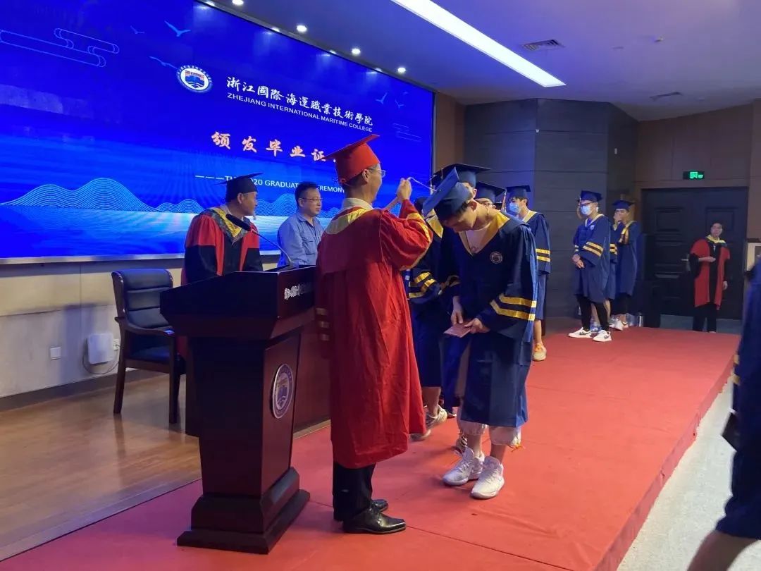 上午10点,在浙海职院石油化工学院2020届毕业典礼上,毕业生代表、教师代表、企业代表等依次发言,校方代表为2020届优秀毕业生颁发了荣誉证书、向校友联络员颁发聘书,并为每一位毕业生颁发毕业证书等。
