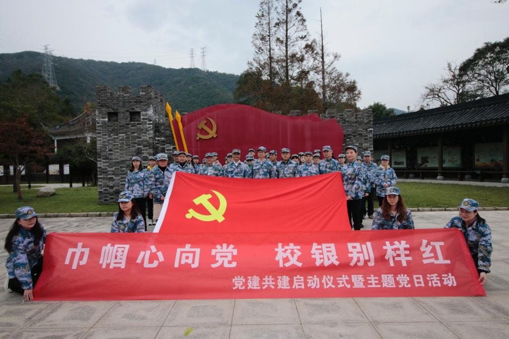 启动仪式后,共建单位开展了“巾帼心向党 校银别样红”的首次主题党日共建活动。党旗下,全体党员整齐列队,高举紧握的右拳,面向党旗重温入党誓词,进一步坚定了理想信念。在庄严的党旗传递仪式中,每位党员肃穆以待,众心归一,将一面火红的党旗在手中传递,传递党旗,更是传递力量。