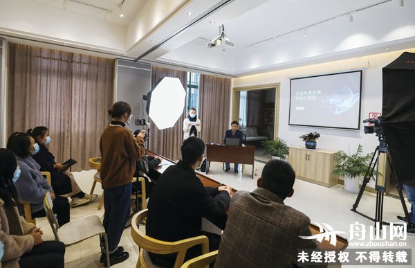 昨天上午,“舟农先锋·红润锦沙”直播间农业电商达人培训班在定海区小沙街道庙桥村三毛会客厅开班,来自市乡村振兴学院、舟山日报社的专家为现场农户和网友们上了一堂“干货满满”的直播课。