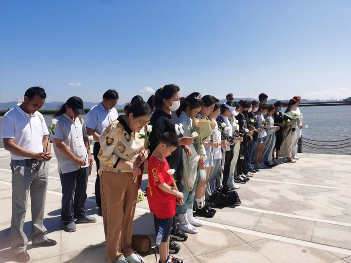 仪式上,大家先向死难者默哀,然后念诵了四封幸存者和遇难者家属发来的悼文。舟山市委党校讲师吴似真主持活动仪式。