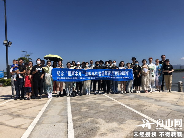 浙江海洋大学乘衣归汉服社、鸥讯社和舟山旅游与健康职业技术学院韶华汉文化社等大学生社团的志愿者也加入了此次纪念活动。现场,全体参与者重新回顾了1942年舟山渔民营救“里斯本丸”运输船上英军战俘的事迹,并进行了默哀,缅怀二战中在中国阵亡的盟军战友。