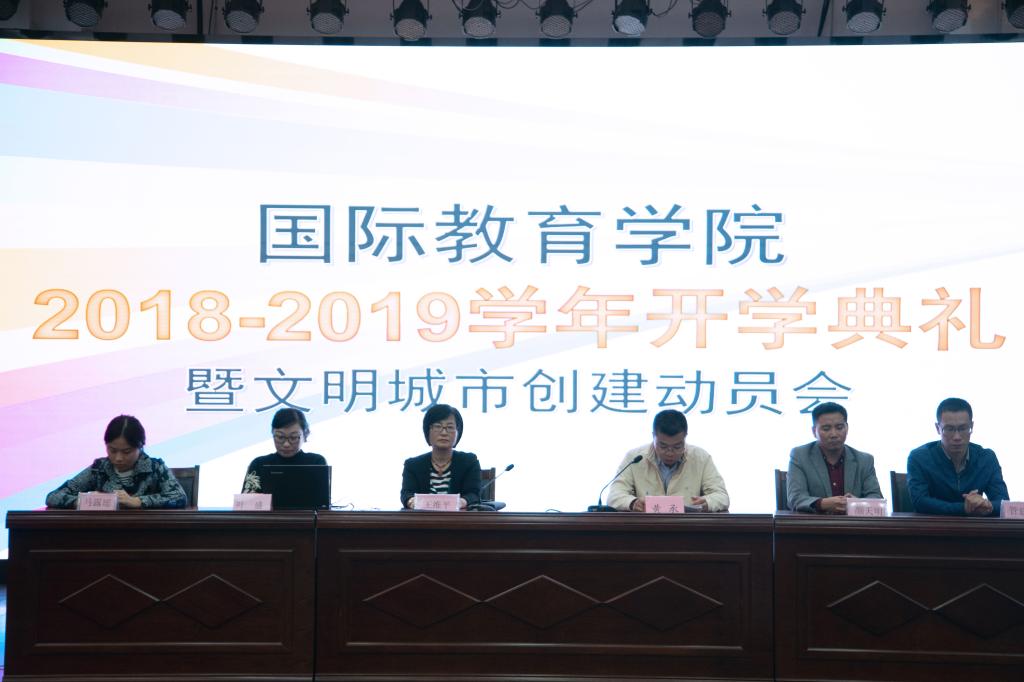 10月12日晚上,国际教育学院在图书馆四楼报告厅举行开学典礼暨创建全国文明城市再动员再推进会。学院党政班子成员和全体师生参加,会议分两个阶段进行,由学院党支部书记黄承主持。
