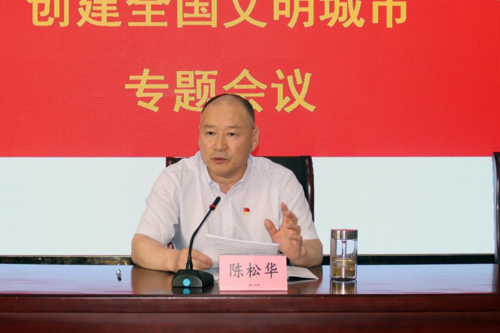 10月11日上午,学校在行政楼401会议室召开创建全国文明城市专题会议。校党委书记、校文明创建工作领导小组组长陈松华和相关部门负责人参加会议。会议由宣传(统战)部部长陈永芳主持。