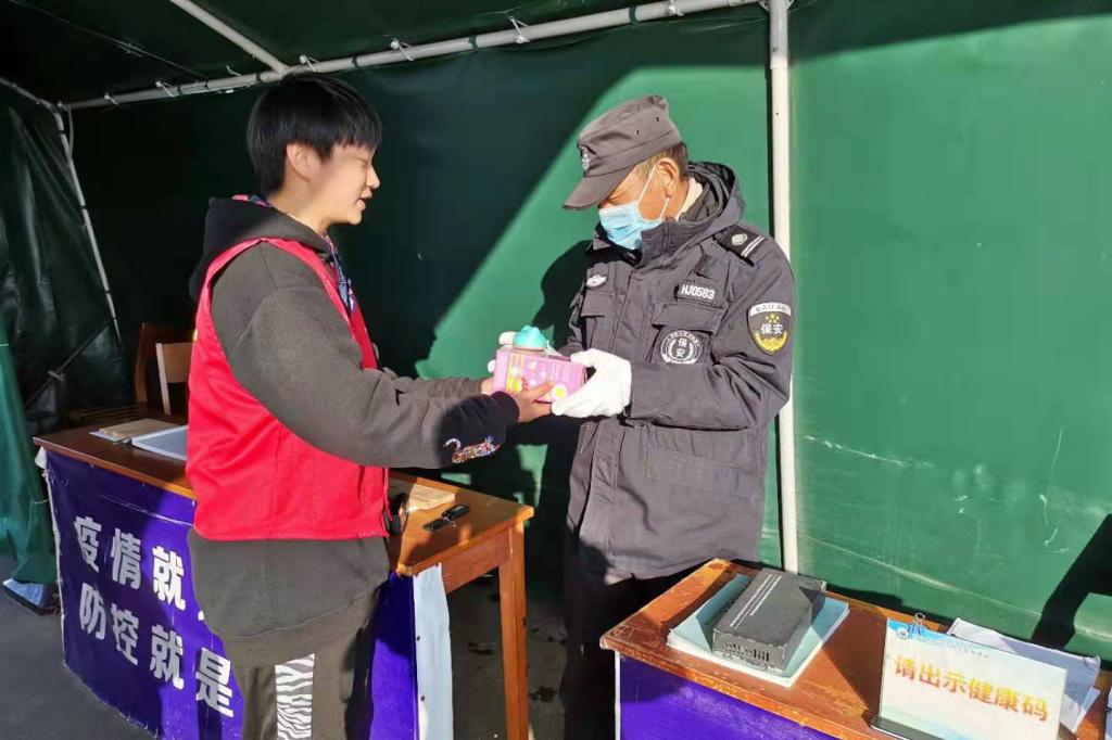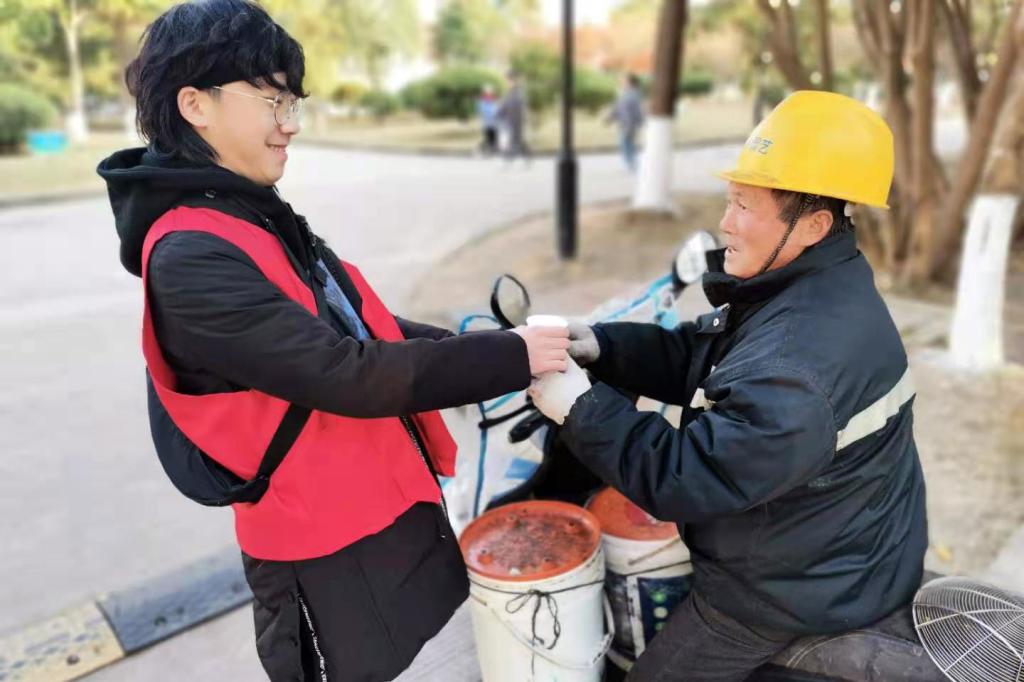 近日,港口管理学院的学生志愿者自发准备了热水、热豆浆,为后勤保障人员们驱寒暖心。志愿者们给每天在学校辛勤劳动的环卫工人、门卫保安以及和同学们朝夕相处的宿管叔叔阿姨们,送上了一份简单却温暖的爱心。