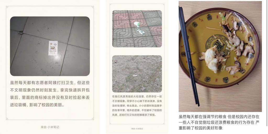 10月25日,国际教育学院开展了“我眼中的不文明现象”调查活动。同学们用温暖又贴心的笔记传达了对于文明校园形象的怜惜之情,呼吁大家一起爱护校园环境,杜绝粮食浪费。在视频采访中,同学们真诚地分享了自己对于校园文明、教室文明及宿舍文明的看法,呼吁大家一起携手并肩,从点滴中建设出一个更可爱更文明的浙海职院。